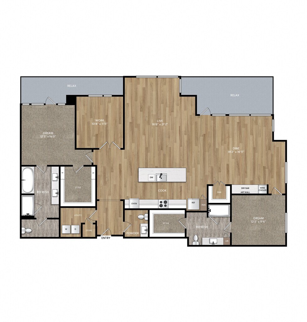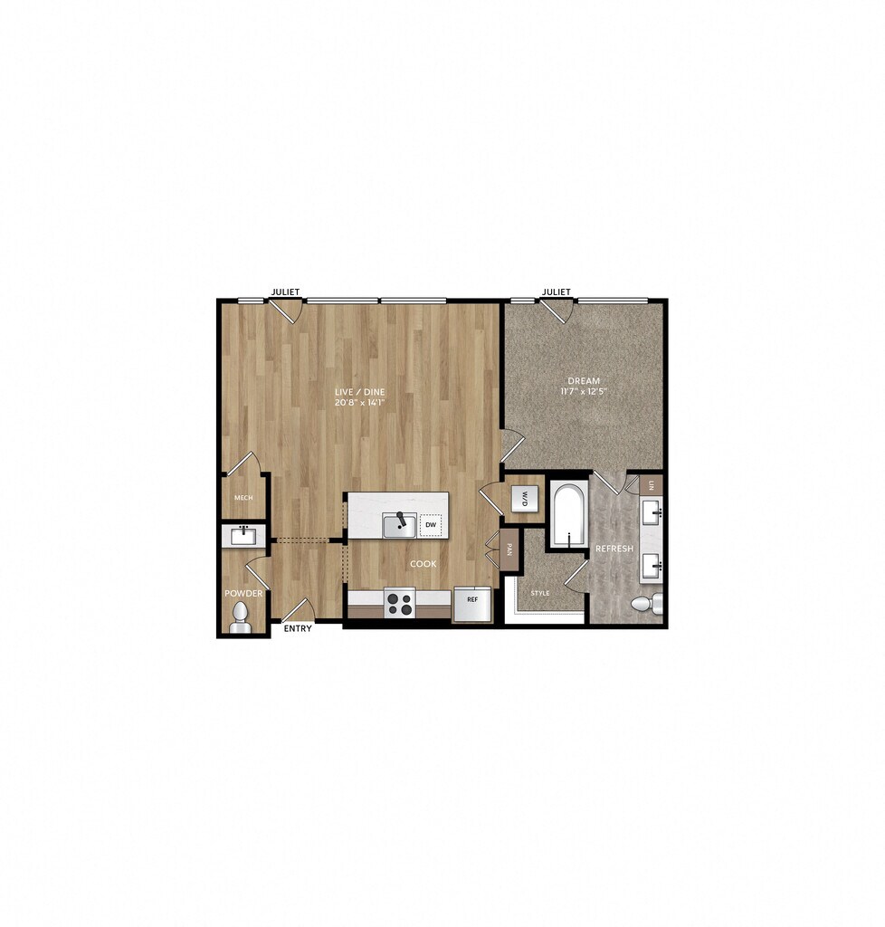 1 Bed, 1 Bath, 795-912 sq ftAvailable NowModel Gallery