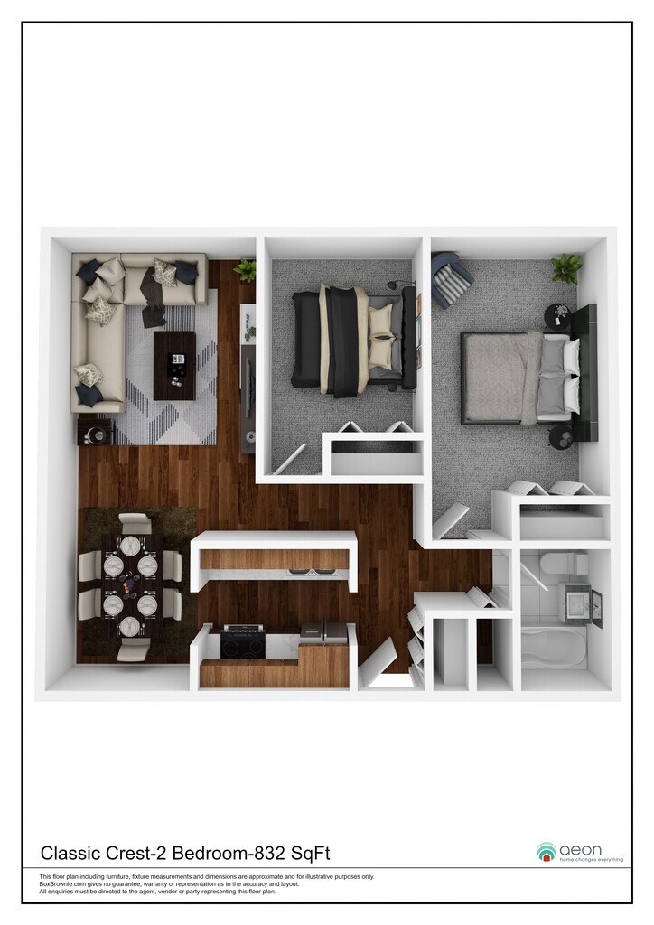 Apartment Model: Classic Crest-2 Bedroom2 Bedroom, 1 Bath, 832 sq ftAvailable Now![]()