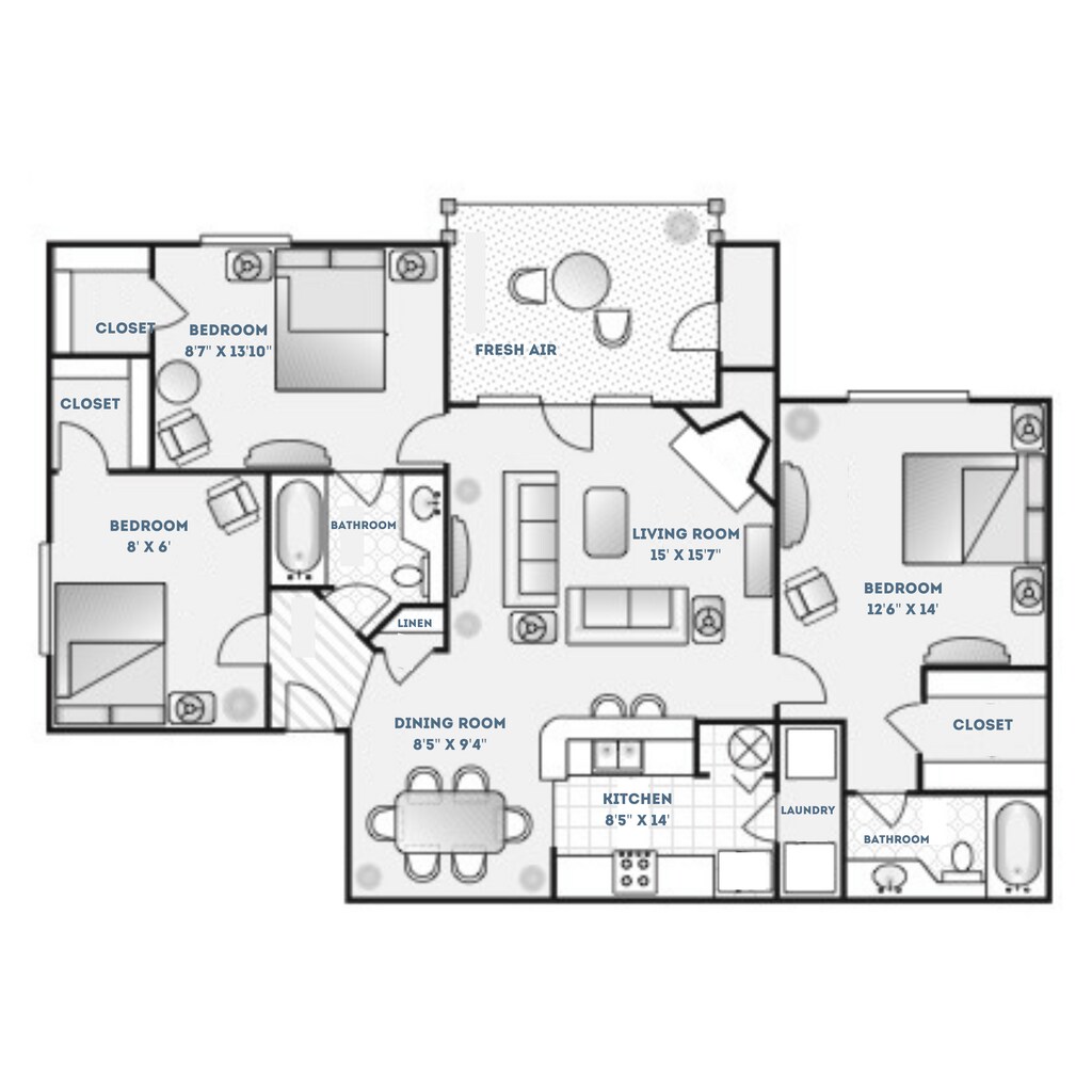 Apartment Model: TUXEDOFrom $1,0301 Bedroom, 1 Bath, 1061 sq ftAvailable Now![]()