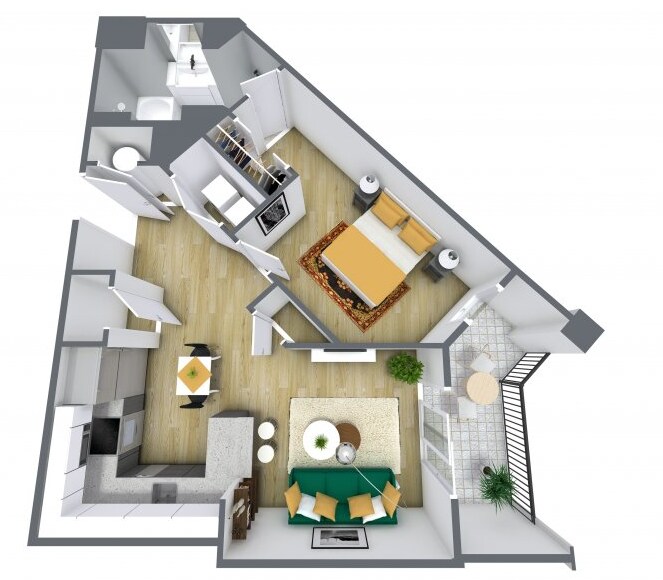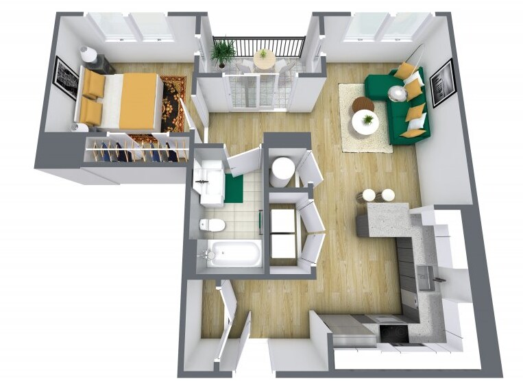 1 Bed, 1 Bath, 643 sq ftModel Gallery