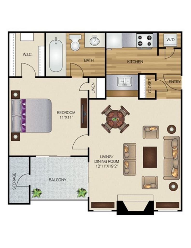 Apartment Model: A3 GoldFrom $8751 Bedroom, 1 Bath, 541 sq ftAvailable Now![]()