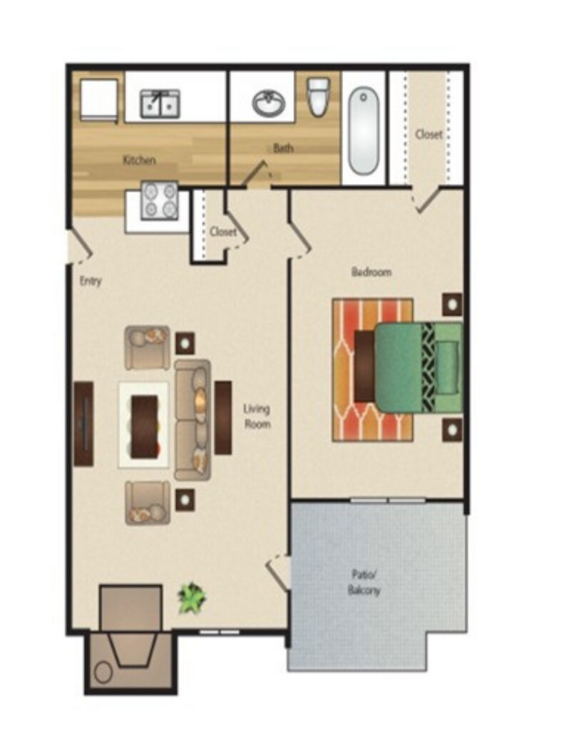 Apartment Model: A2 Gold$8751 Bedroom, 1 Bath, 530 sq ftAvailable Now![]()