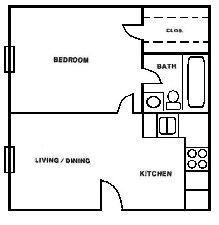 Apartment Model: 1br/1ba$7951 Bedroom, 1 Bath, 500-570 sq ftAvailable Now![]()
