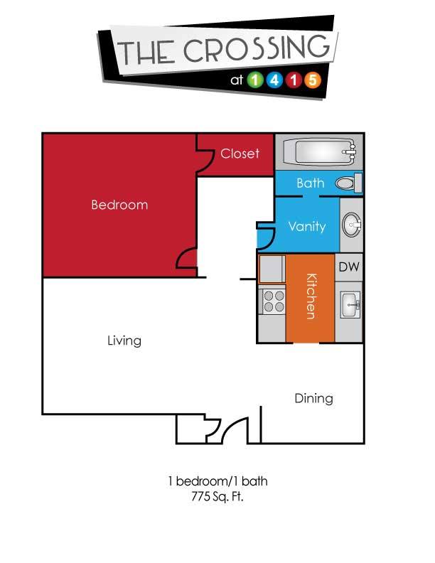 Apartment Model: 1 Bed 1 Bath1 Bedroom, 1 Bath, 775 sq ftUnavailableFloorplansPhotos![]()