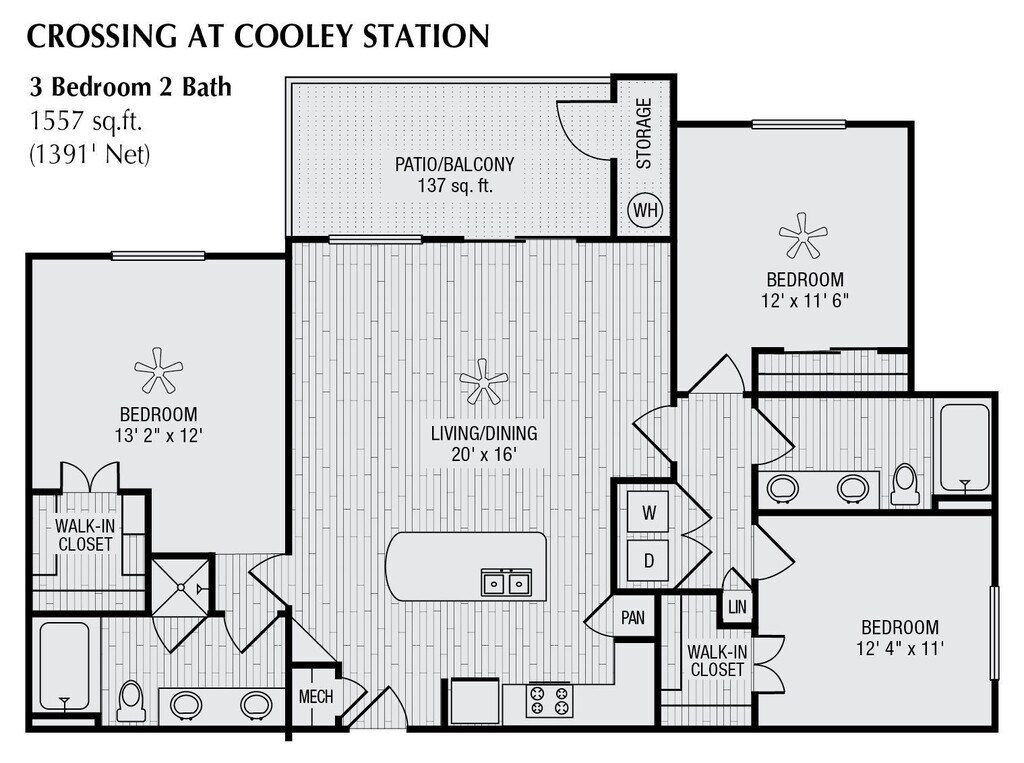 The Crossing at Cooley Station offers 1 to 3 Bedroom apartments starting from $1,400 and having 586–1,397 sq ft. Here is the current pricing and availability: