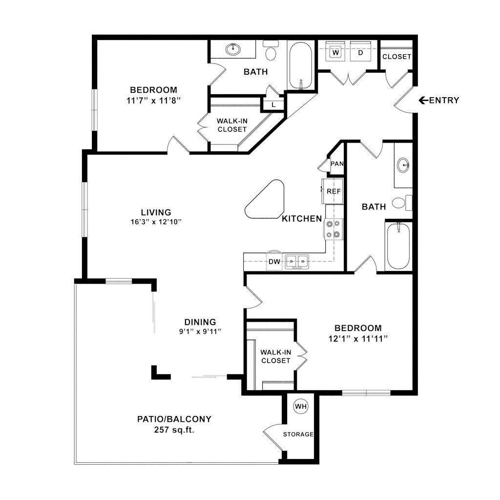 1 Bed 1 Bath 780 SqFt (654 Net) - Floorplan 2 ![]()