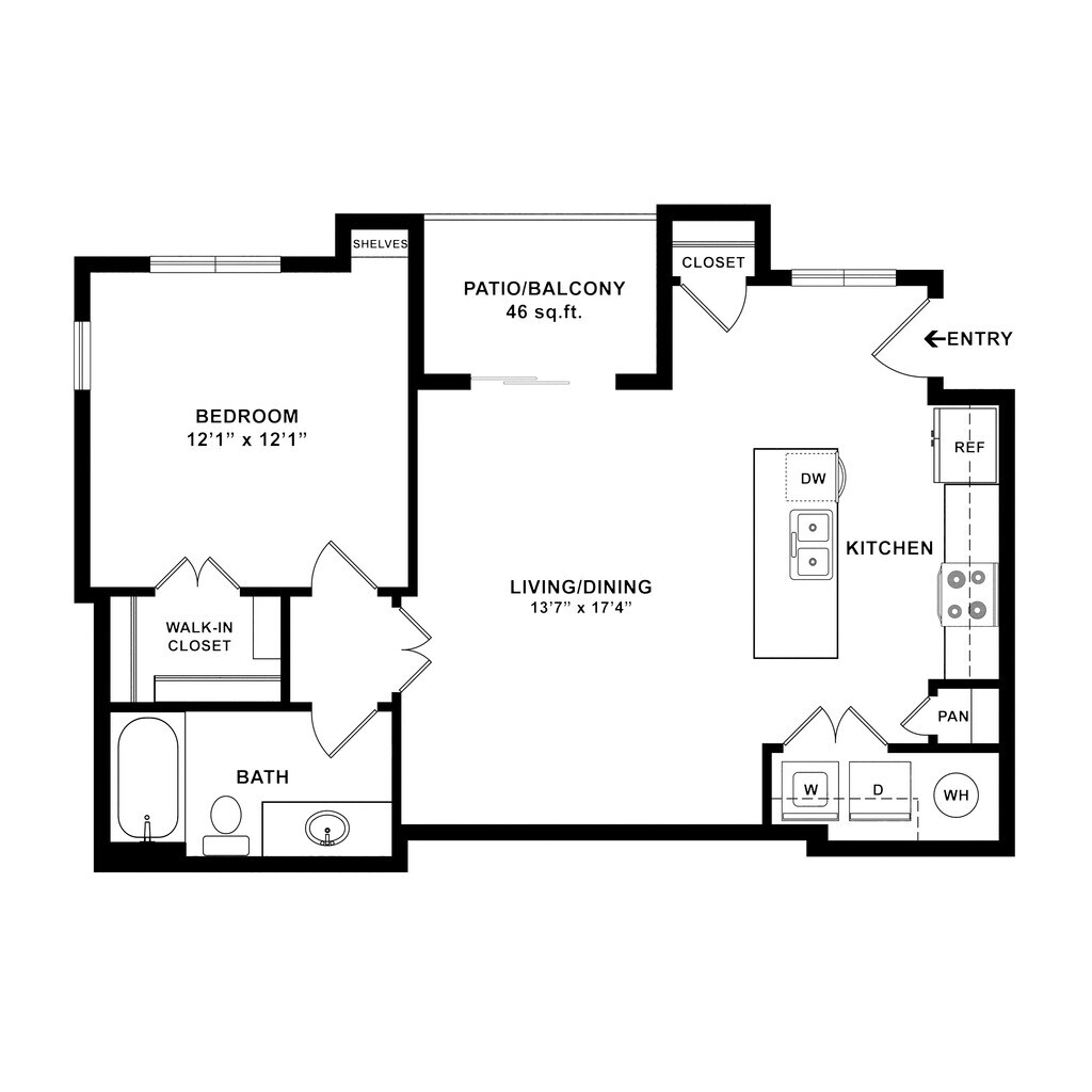 1 Bed 1 Bath 780 SqFt (654 Net) - Floorplan 3 ![]()