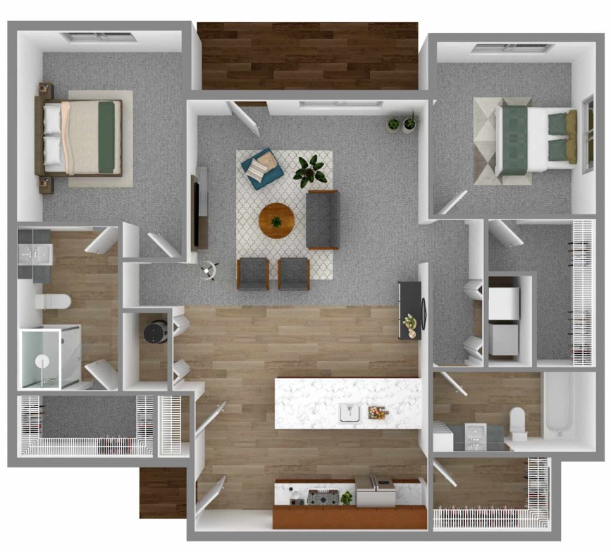 2 Beds, 2 Baths, 1189 sq ftAvailable NowLargest 2 BedroomThis is the largest 2 Bedroom at this PropertyModel Gallery