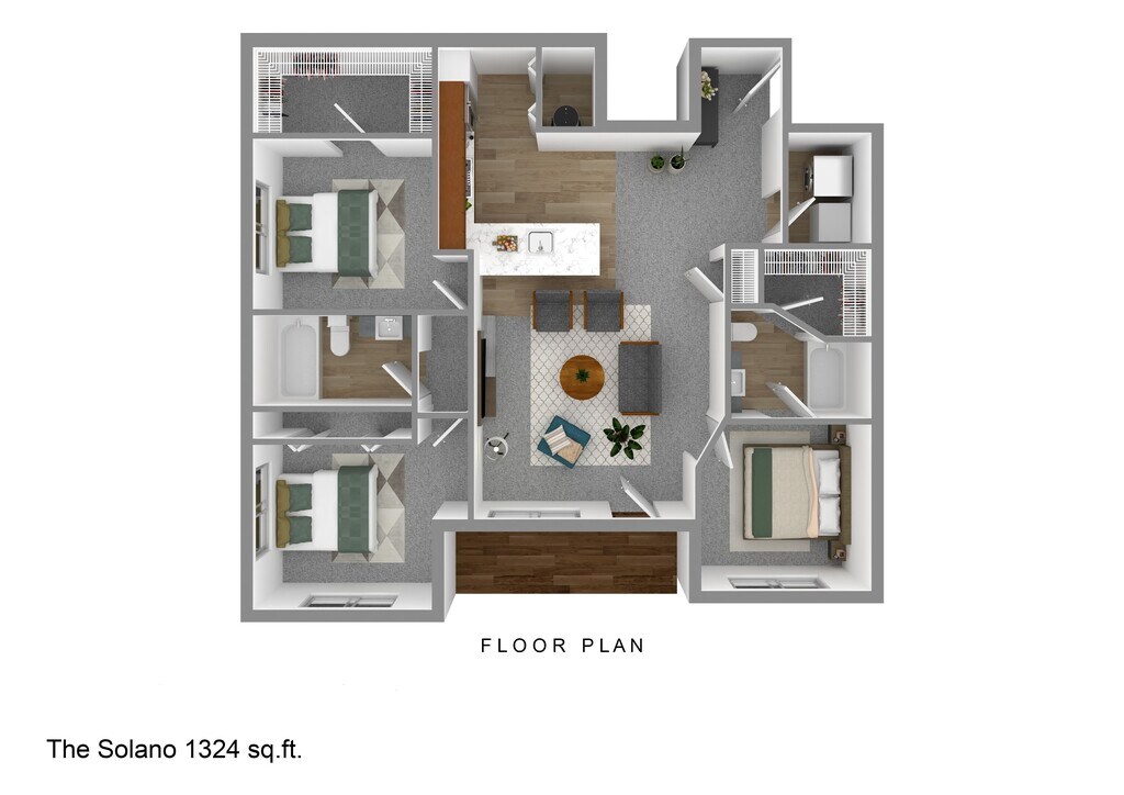 Apartment Model: Solano$1,8103 Bedroom, 2 Bath, 1324 sq ftAvailable Now![]()
