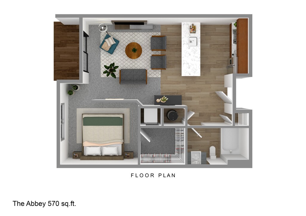 Apartment Model: Abbey$1,100Studio, 1 Bath, 570 sq ftAvailable Now![]()