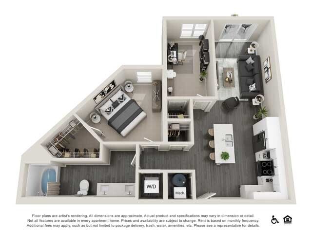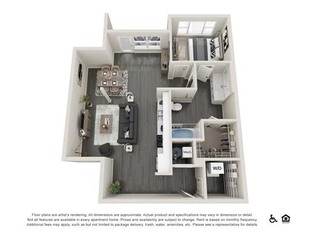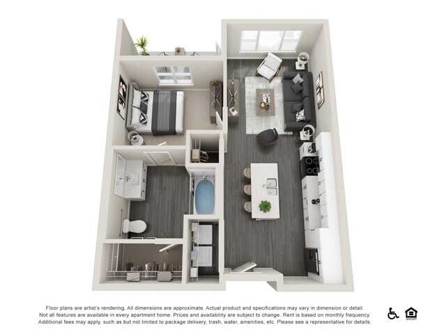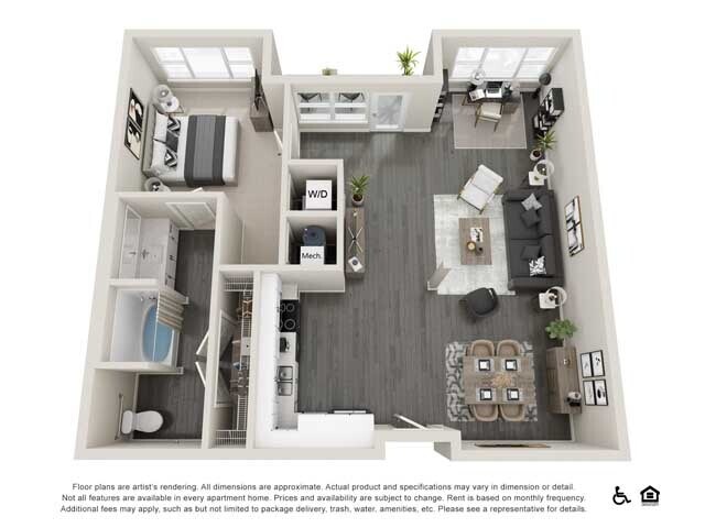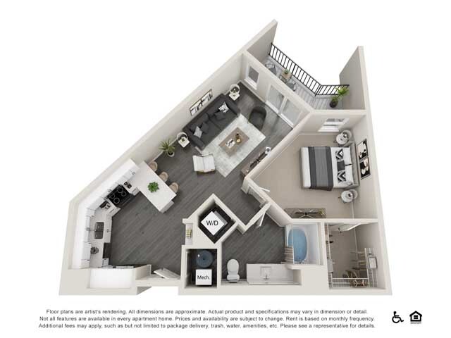 Apartment Model: StudioFrom $1,285Studio, 1 Bath, 583 sq ftAvailable NowFloor plans are artist's rendering. All dimensions are approximate. Actual product and specifications may vary in dimension or detail. Not all features are available in every rental home. Prices and availability are subject to change. Base rent is based on monthly frequency. Additional fees may apply, such as but not limited to package delivery, trash, water, amenities, etc. Deposits vary. Please see a representative for details.