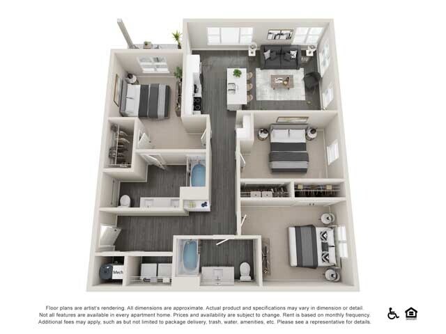 Apartment Model: A3$1,7991 Bedroom, 1 Bath, 953 sq ftAvailable NowFloor plans are artist's rendering. All dimensions are approximate. Actual product and specifications may vary in dimension or detail. Not all features are available in every rental home. Prices and availability are subject to change. Base rent is based on monthly frequency. Additional fees may apply, such as but not limited to package delivery, trash, water, amenities, etc. Deposits vary. Please see a representative for details.