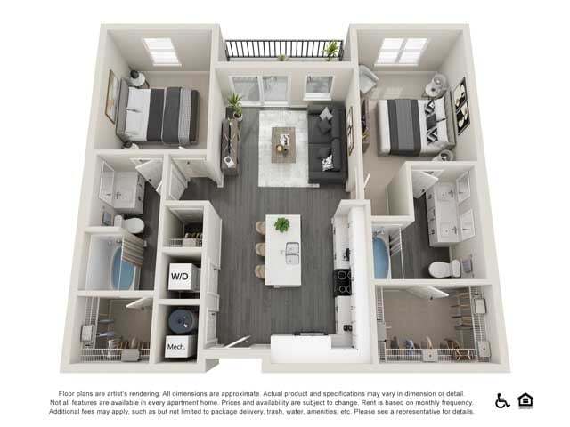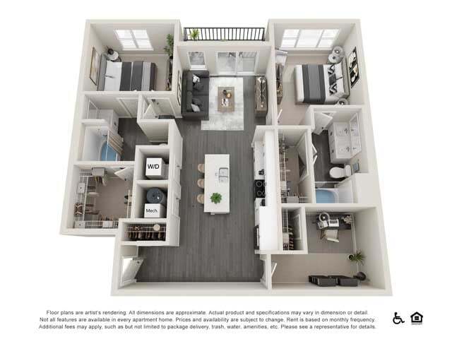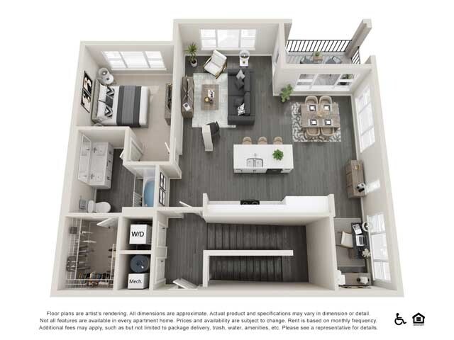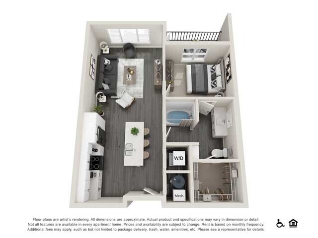 Apartment Model: A2From $1,6251 Bedroom, 1 Bath, 805 sq ftAvailable NowFloor plans are artist's rendering. All dimensions are approximate. Actual product and specifications may vary in dimension or detail. Not all features are available in every rental home. Prices and availability are subject to change. Base rent is based on monthly frequency. Additional fees may apply, such as but not limited to package delivery, trash, water, amenities, etc. Deposits vary. Please see a representative for details.