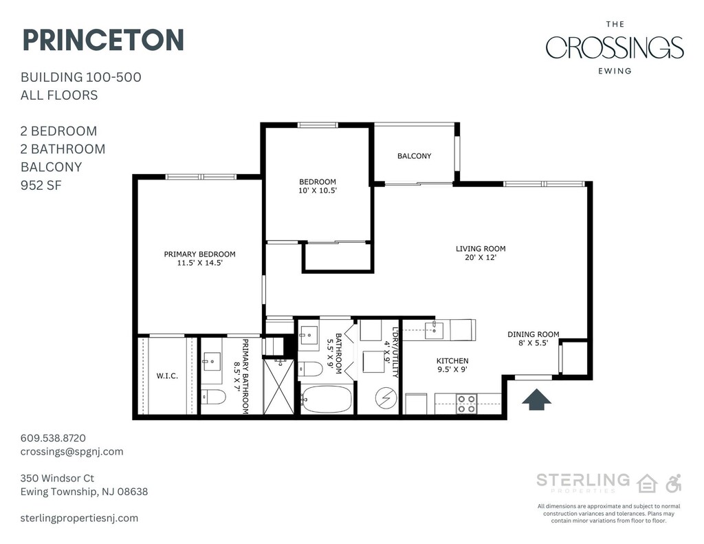 The Crossings at Ewing offers 2 Bedroom apartments starting from $2,325 and having 952–959 sq ft. Here is the current pricing and availability: