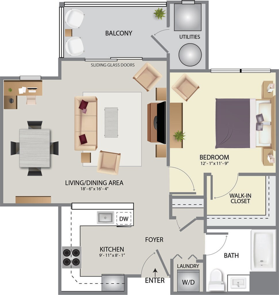 Apartment Model: Metro IFrom $2,1951 Bedroom, 1 Bath, 725 sq ftAvailable Now![]()