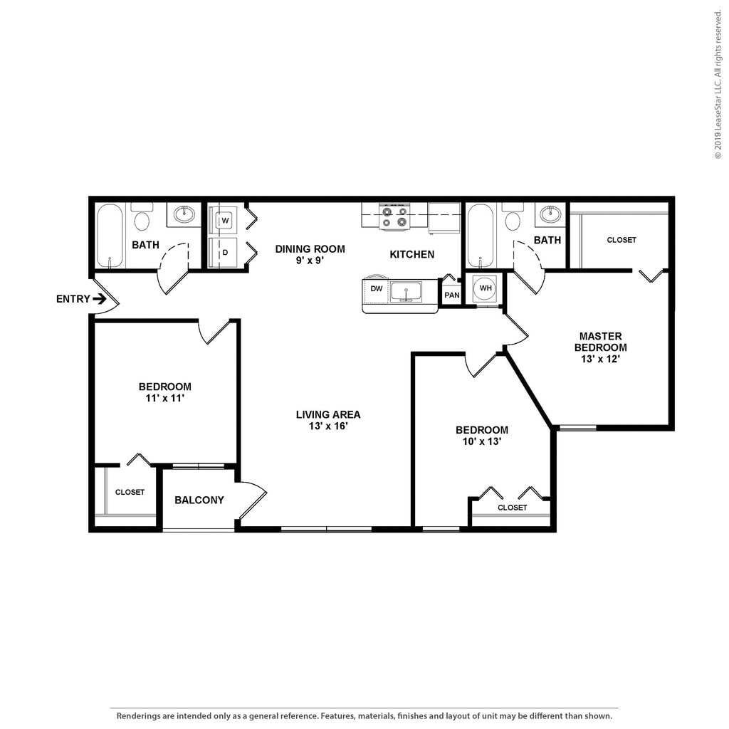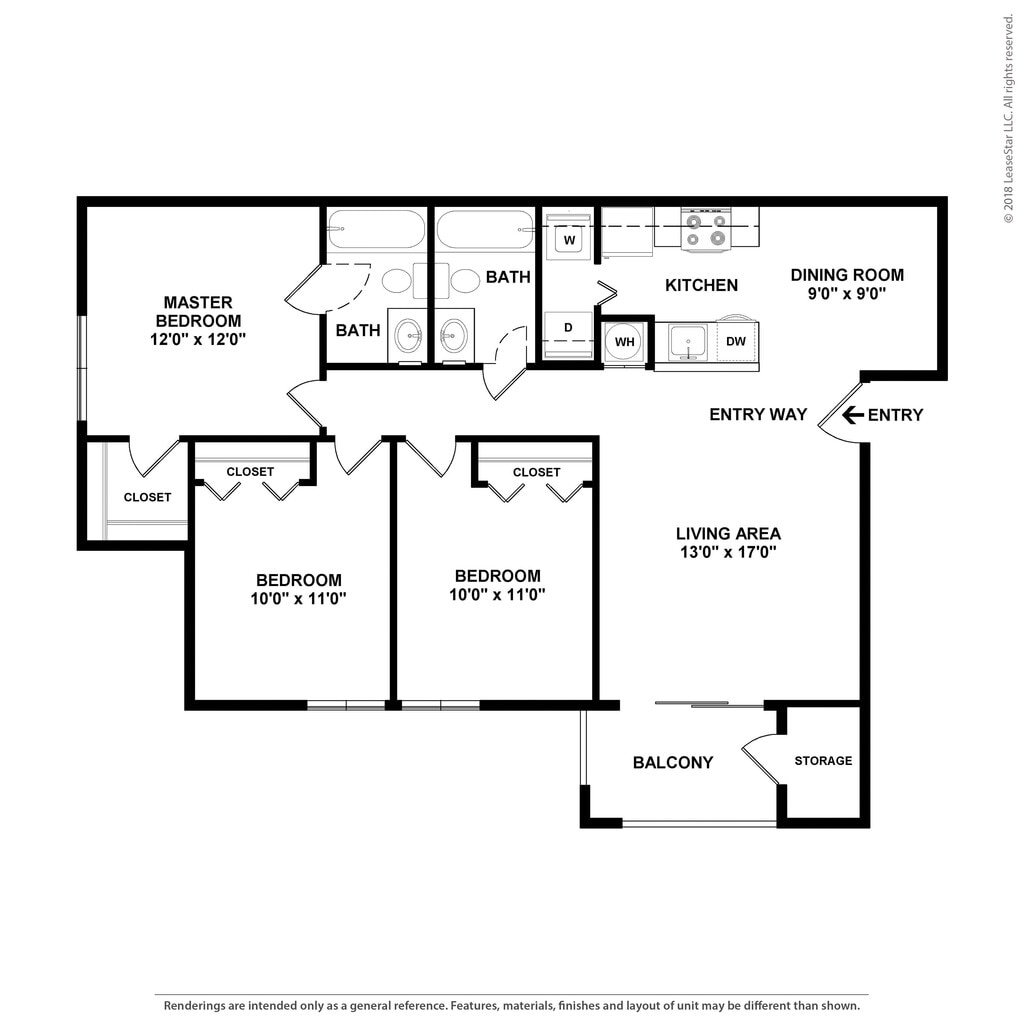 Apartment Model: Rosewood3 Bedroom, 2 Bath, 1117 sq ftUnavailable![]()