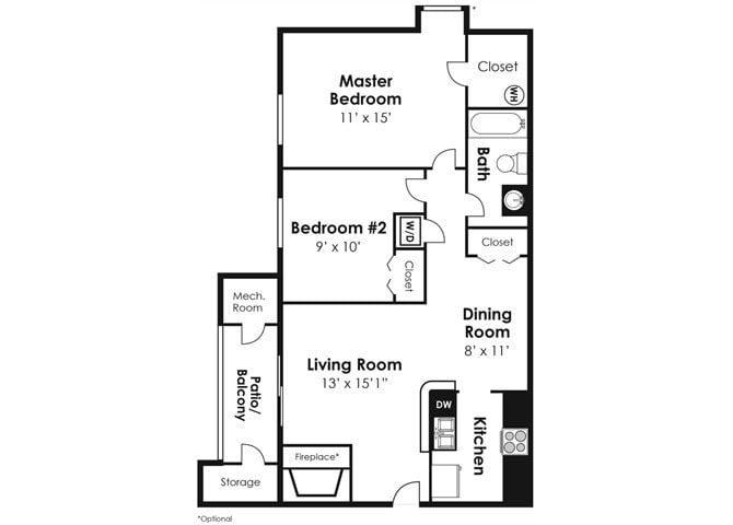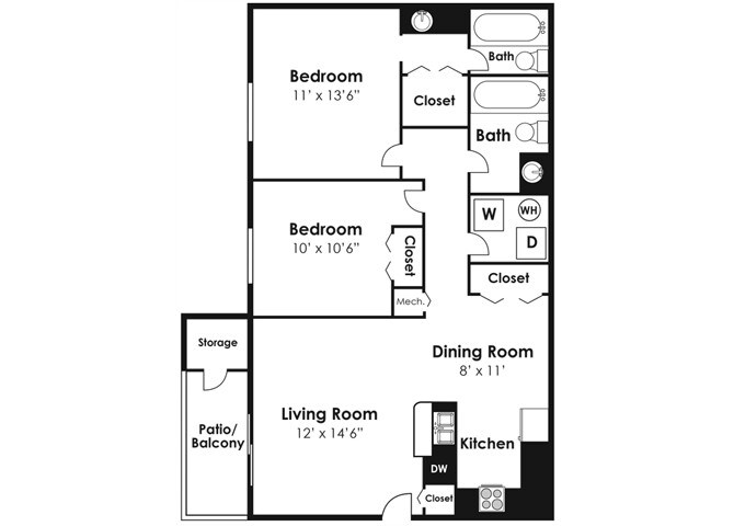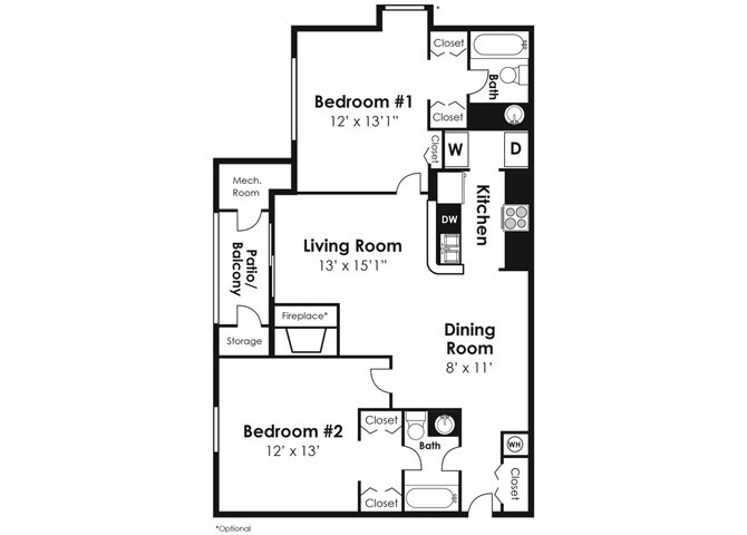 1 Bedroom 1 Bath - CWM II - Floorplan 1 ![]()