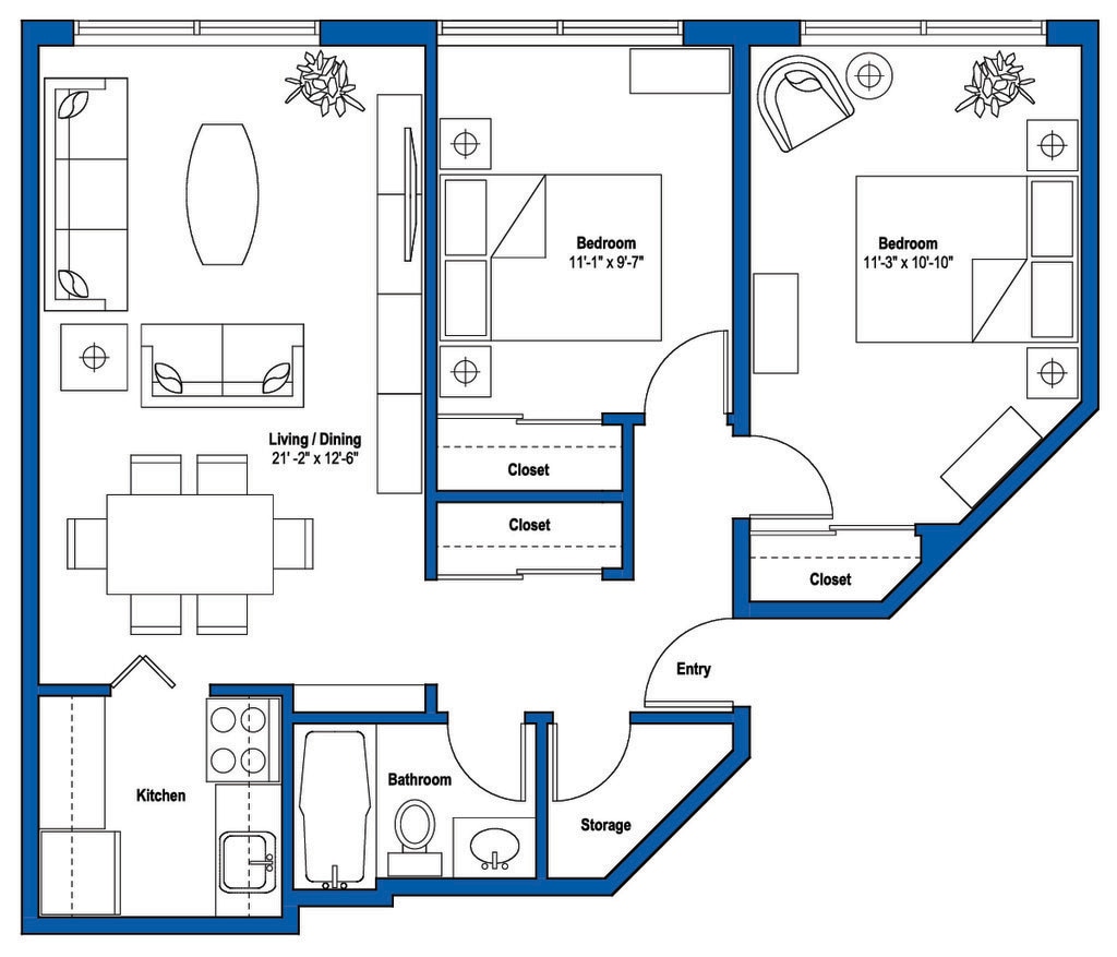 2 Beds, 1 Bath, 685-700 sq ftAvailable NowModel Gallery