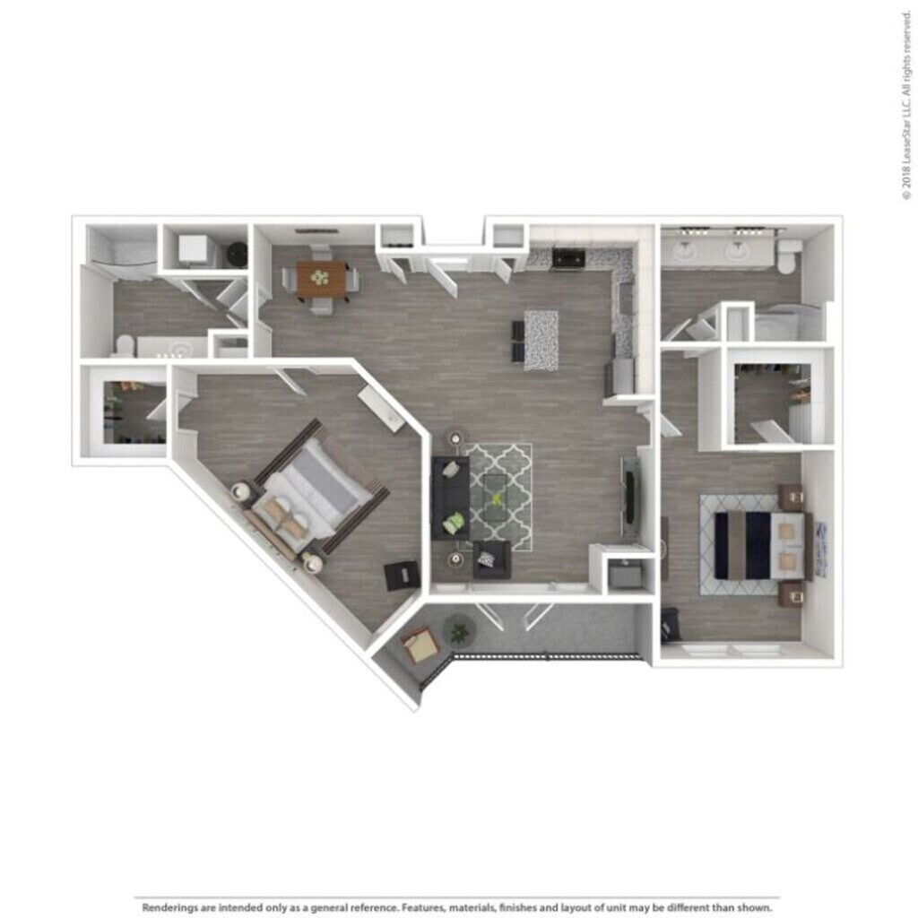 C-S2 - Image 1 Floor plans are artist's rendering. All dimensions are approximate. Actual product and specifications may vary in dimension or detail. Not all features are available in every rental home. Please see a representative for details.