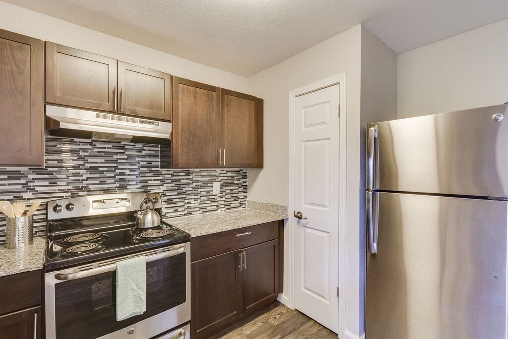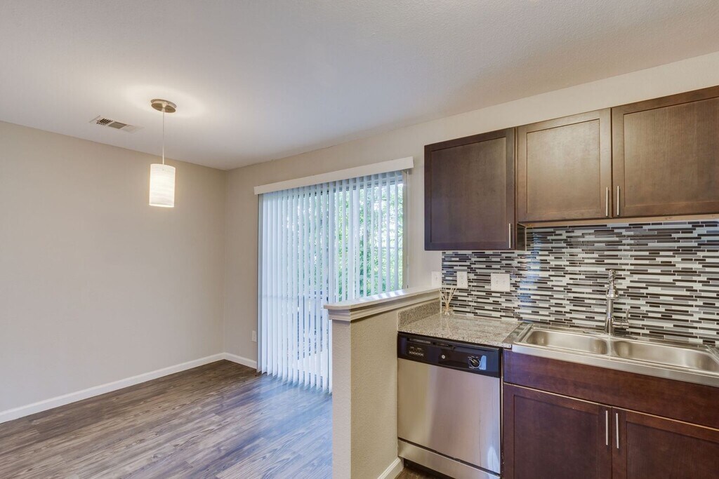 Our Deluxe floor plan features new hardwood vinyl plank flooring, custom cabinetry, new light fixtures, and upgraded blinds. You'll enjoy solar screens along with our professional landscaping for a luxurious and comfortable living experience. Each apartment comes with a full size washer and dryer. The kitchen features all new black appliances and you'll love having your own private patio. Do you have any pets? We don't have any breed or weight restrictions, so ALL PETS ARE WELCOME! We are located only a block away from the river and have FREE kayak rentals for all of our residents!