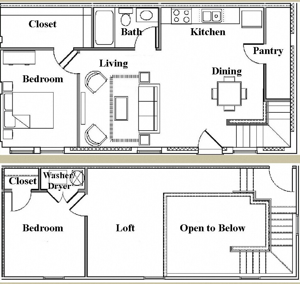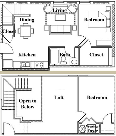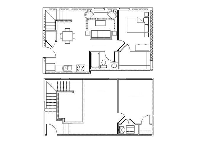 B3 Two Bedroom / One Bath Loft - Floorplan 1 B4 Two Bedroom / One Bath Loft