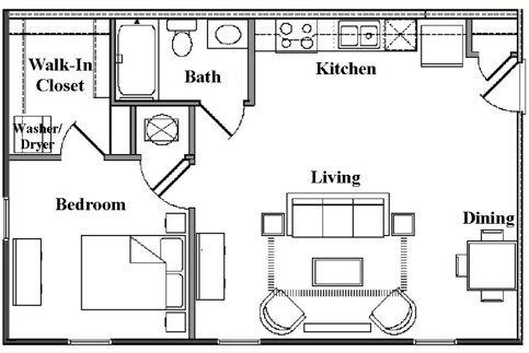 A2A One Bedroom / One Bath - Floorplan 1 A5 One Bedroom / One Bath