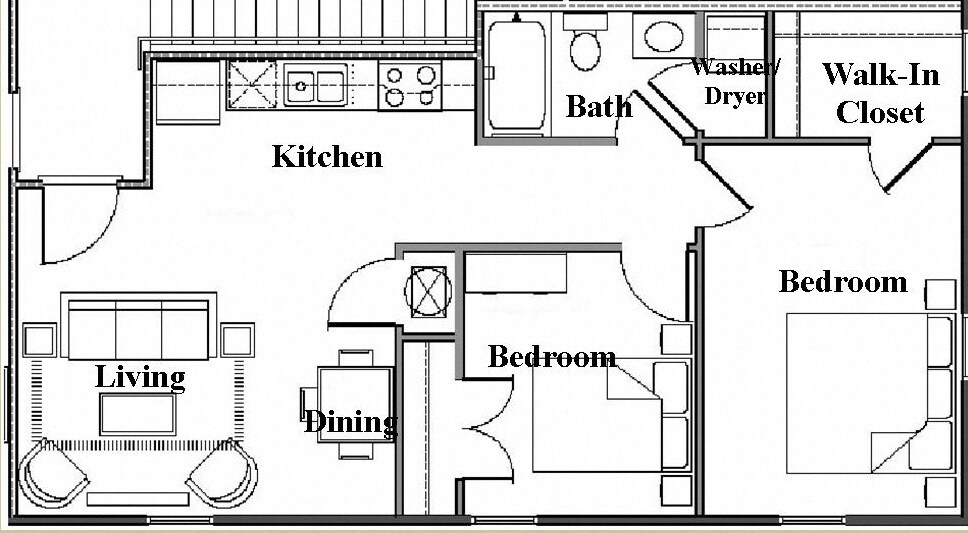 B2 Two Bedroom / One Bath - Floorplan 1 B3 Two Bedroom / One Bath Loft