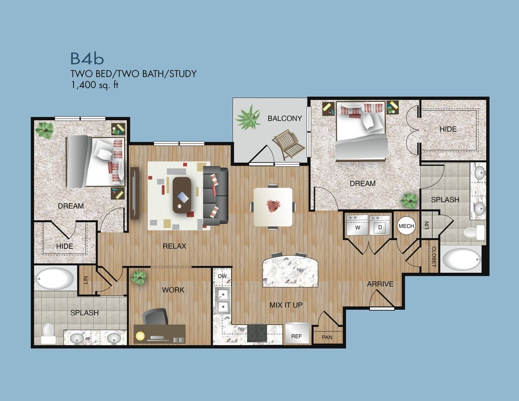 Studio, 1 Bath, 746 sq ftLargest StudioThis is the largest Studio at this PropertyModel Gallery