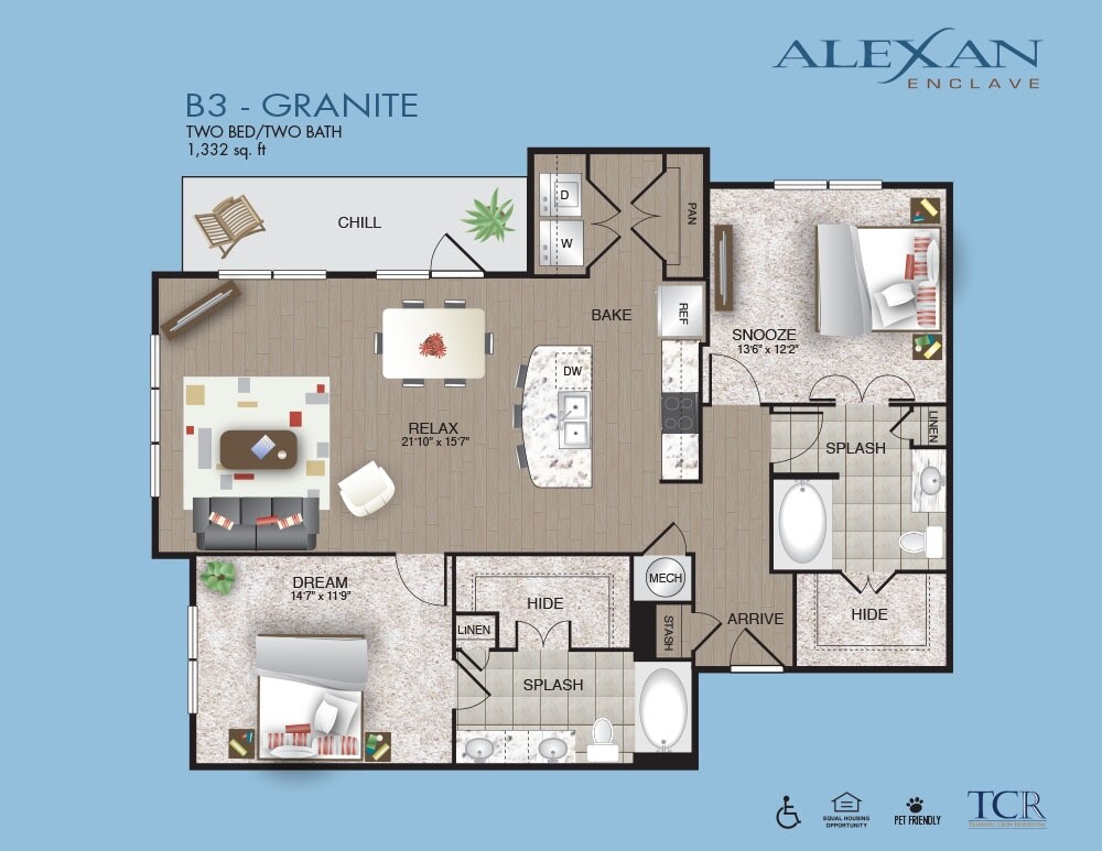 1 Bed, 1 Bath, 794-814 sq ftAvailable NowModel Gallery