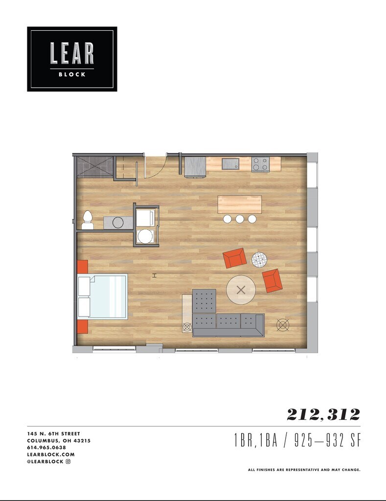 Lear Block 212 & 312 - Floorplan 11 Apartment Unit: 212Apartment Model: Lear Block 212 & 312$1,6501 Bedroom, 1 Bath, 925 sq ftAvailable Now2 Bedrooms