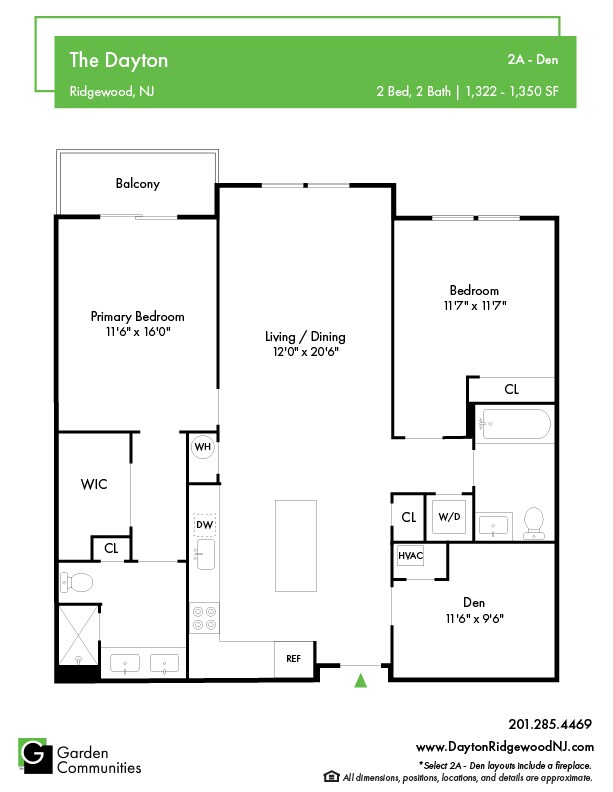 Apartment Model: $4.43/sq.ft. - 2A - Den2 Bedroom, 2 Bath, 1322 sq ftAvailable January 14, 2026![]()