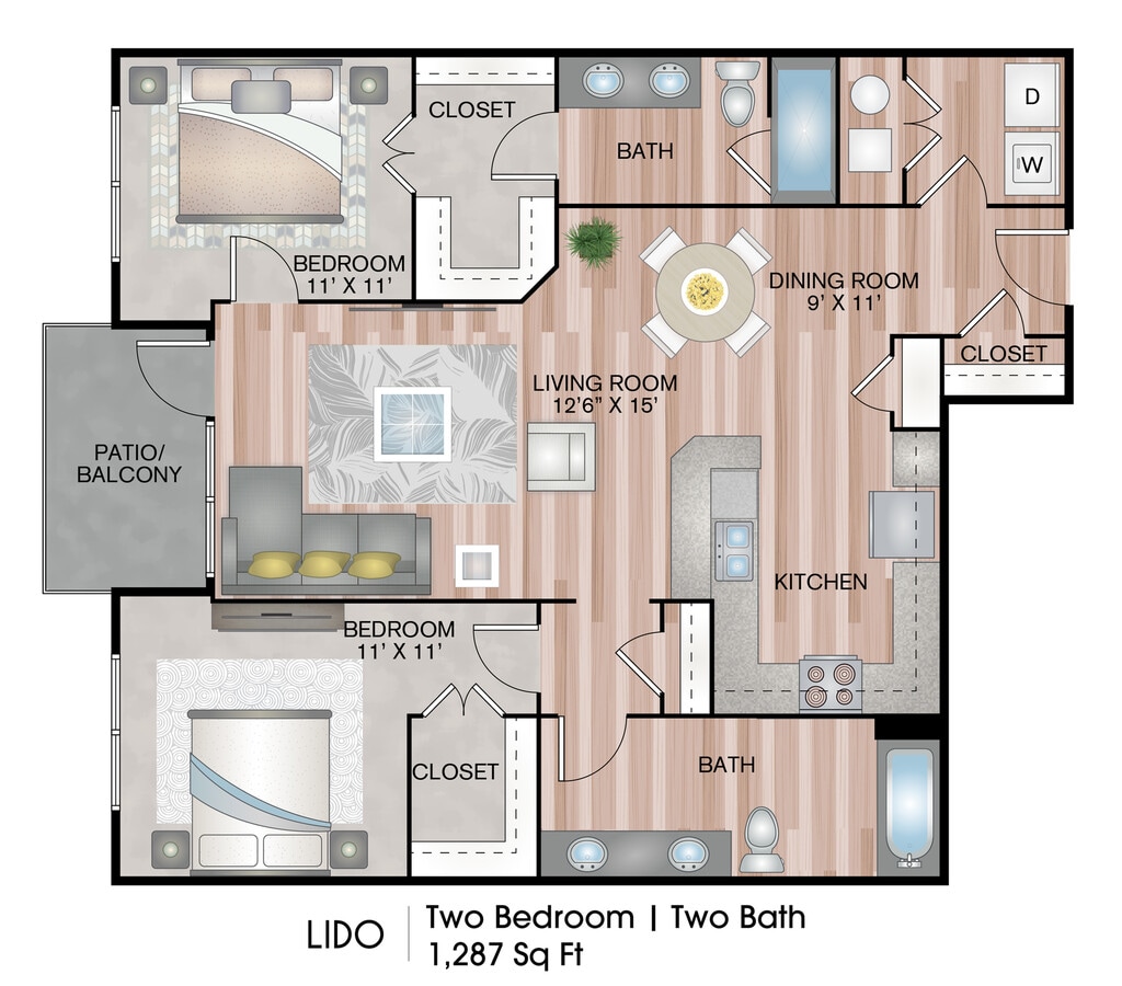 Apartment Model: Lemon BayFrom $2,5601 Bedroom, 1 Bath, 850 sq ftAvailable Now![]()