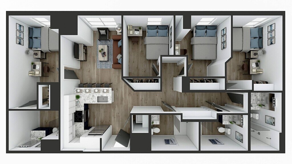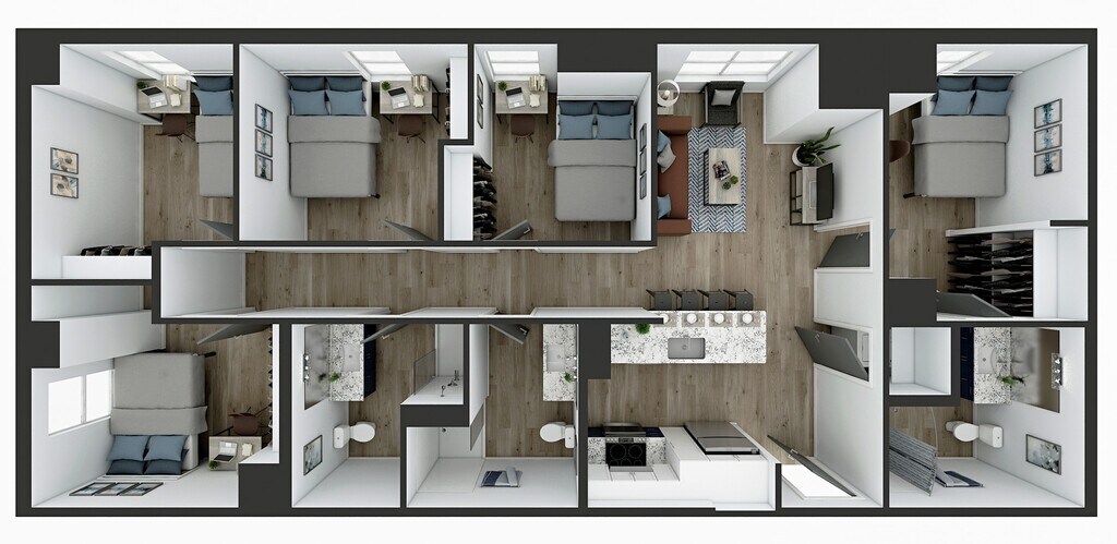 D3 - Floorplan 1 Apartment Unit: PrivateApartment Model: D3$8344 Bedroom, 4 Bath, 1257 sq ftAvailable NowApartment Unit: Adjoining BathApartment Model: D3$8344 Bedroom, 4 Bath, 1257 sq ftAvailable August 15, 2026Apartment Unit: Penthouse LevelApartment Model: D3$8344 Bedroom, 4 Bath, 1257 sq ftAvailable August 15, 2026Floorplan D5
