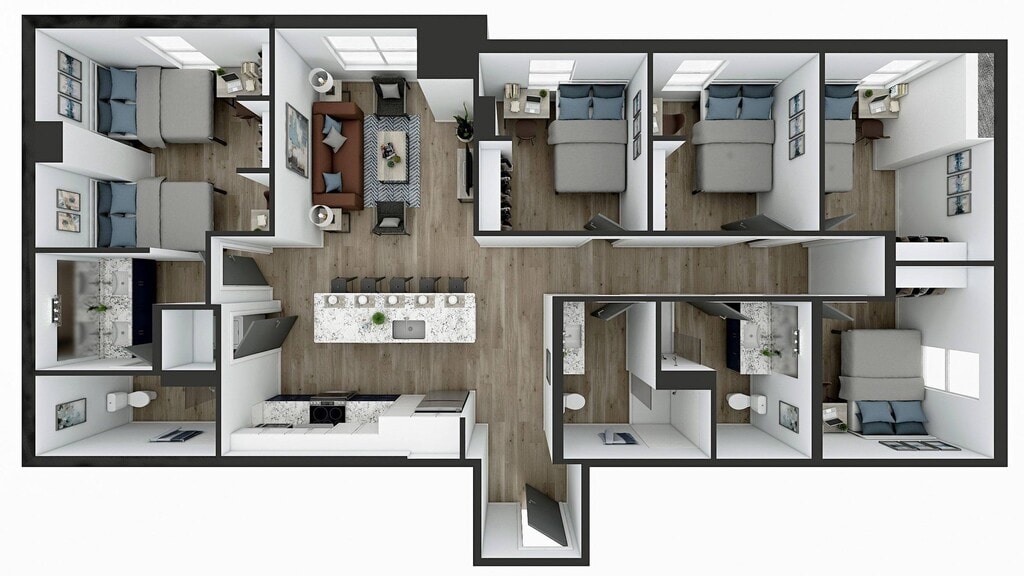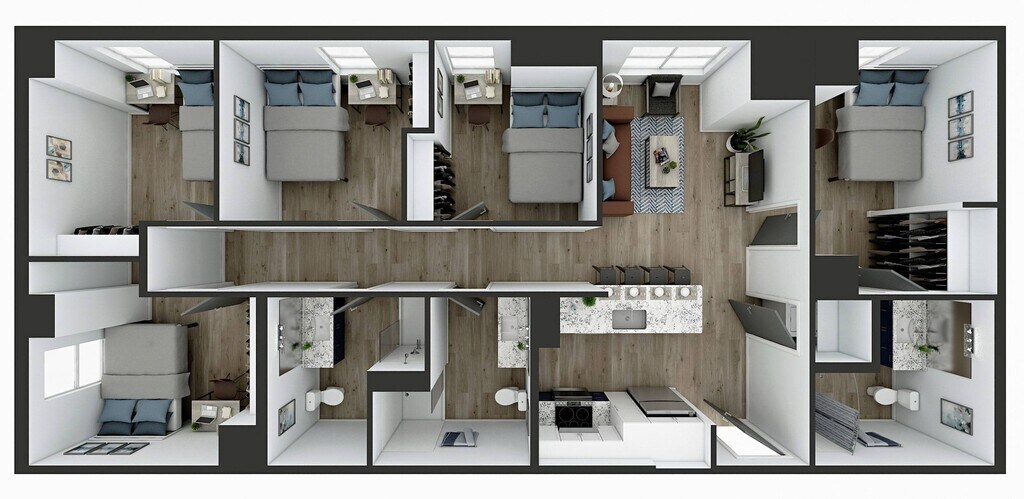 D5 - Floorplan 1 Apartment Unit: Adjoining BathApartment Model: D5$7844 Bedroom, 3 Bath, 1138 sq ftAvailable August 15, 2026Apartment Unit: Penthouse LevelApartment Model: D5$7844 Bedroom, 3 Bath, 1138 sq ftAvailable August 15, 2026Apartment Unit: Penthouse Level w/Adjoining BathApartment Model: D5$7844 Bedroom, 3 Bath, 1138 sq ftAvailable August 15, 20265 Bedrooms