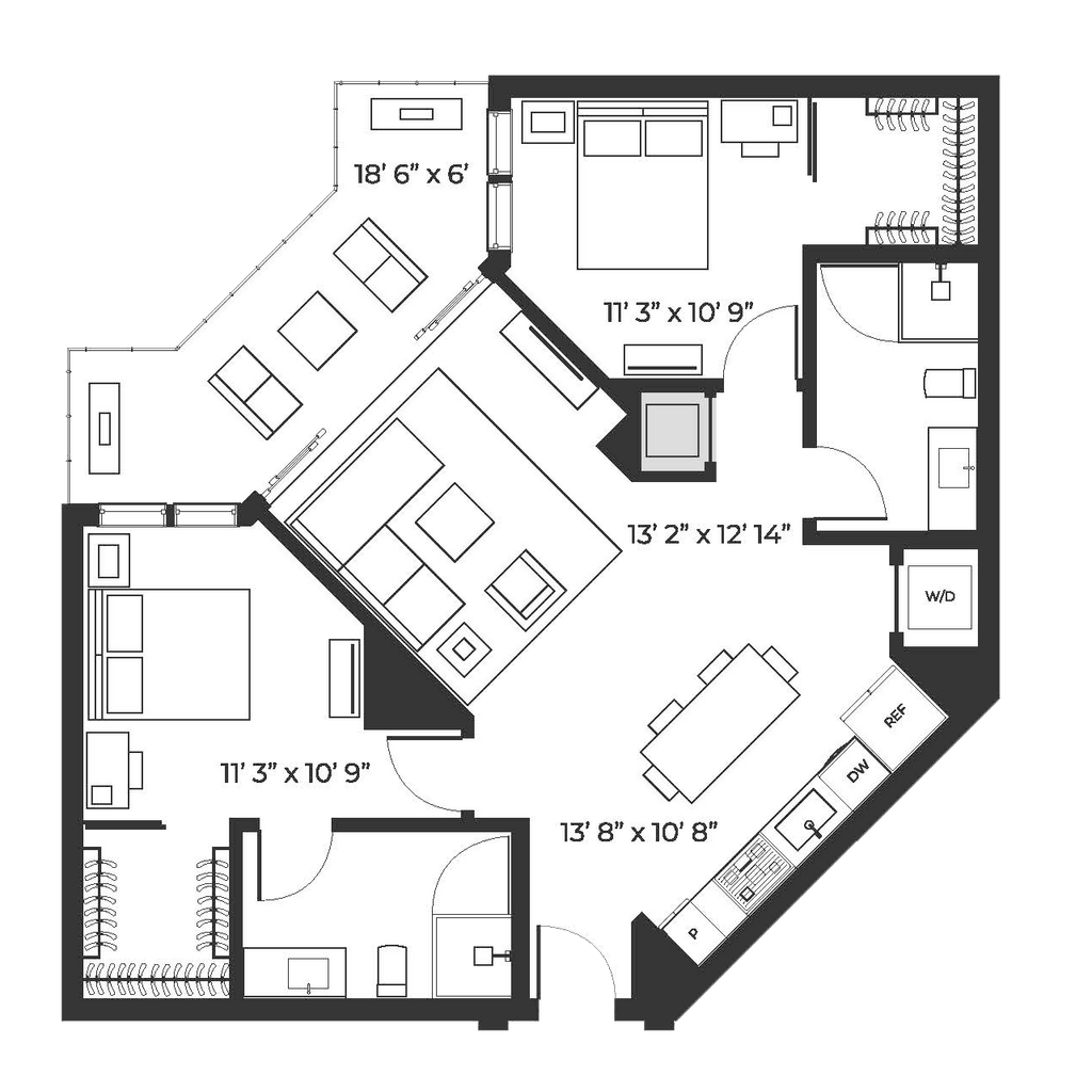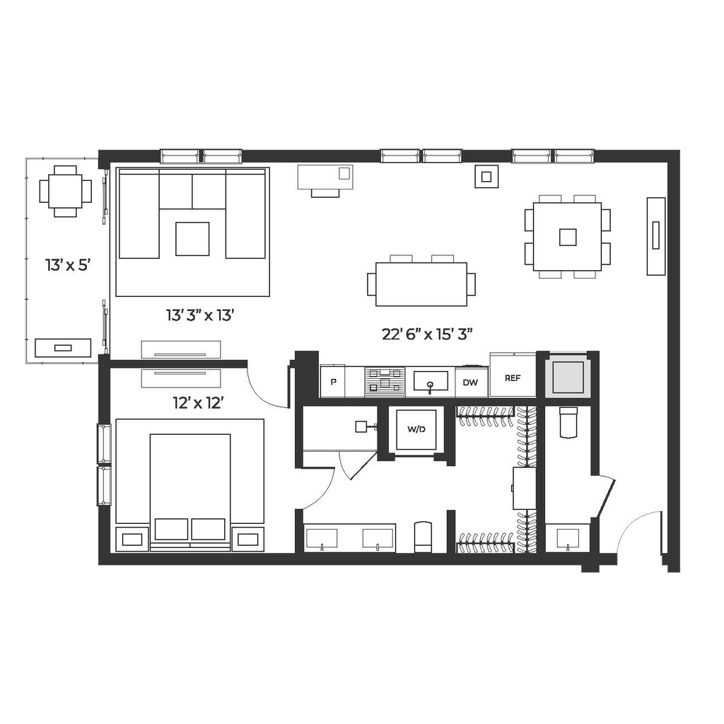 1 Bed, 1 Bath, 655-665 sq ftAvailable NowModel Gallery