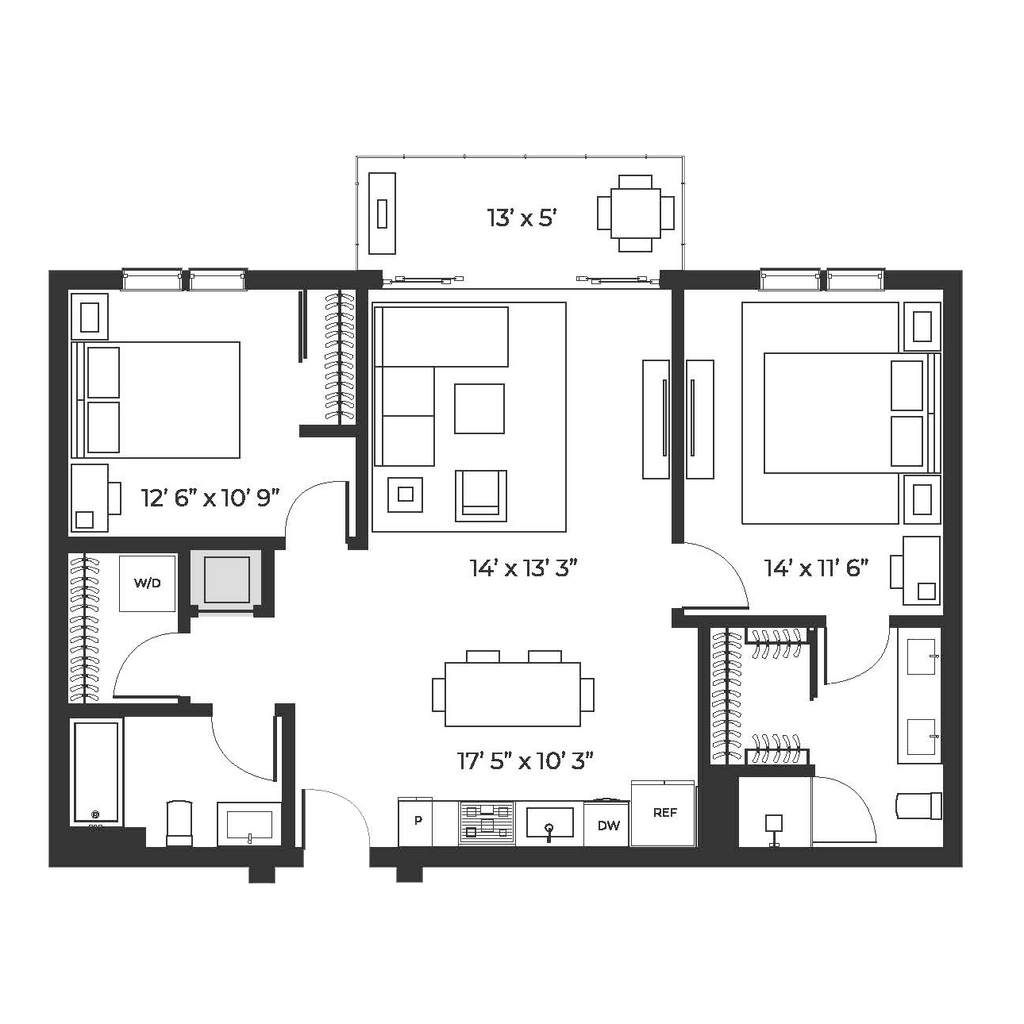 The Deco at 5211 offers Studio to 3 Bedroom apartments starting from $1,455 and having 620–1,700 sq ft. Here is the current pricing and availability: