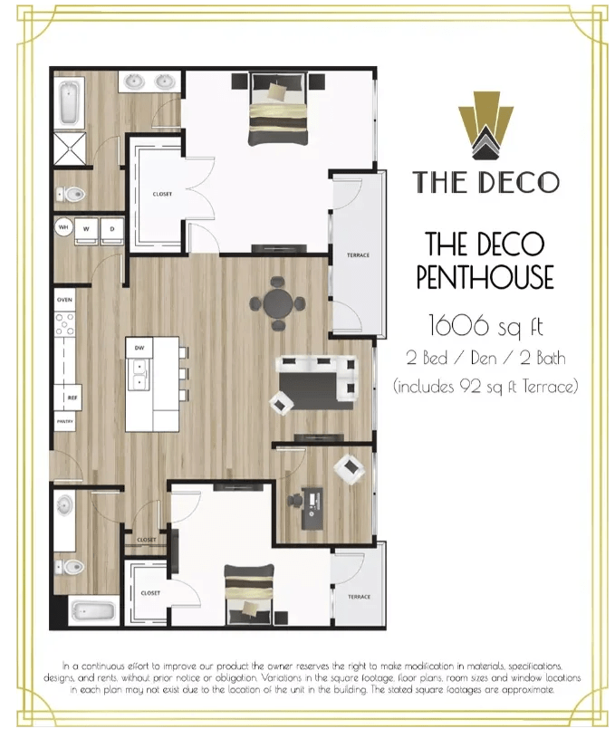 Studio to 2 Bedroom Apartments at The Deco at Victorian Square currently range from $1,521 to $1,800