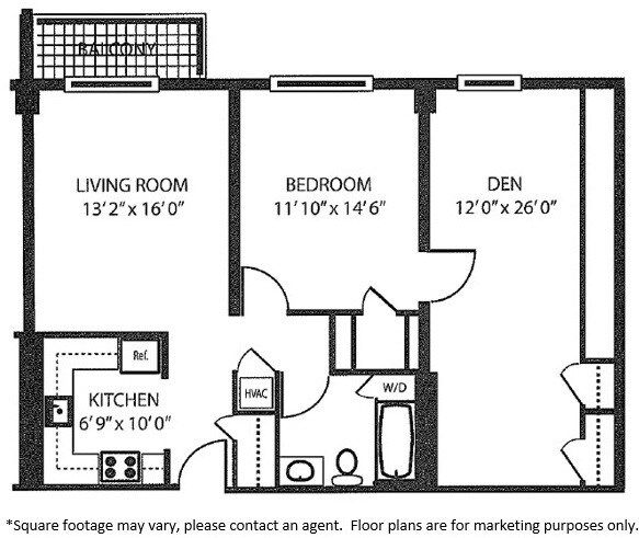 1 BED-1BATH W/DEN TIER 12 - Floorplan 1 2 Bedrooms