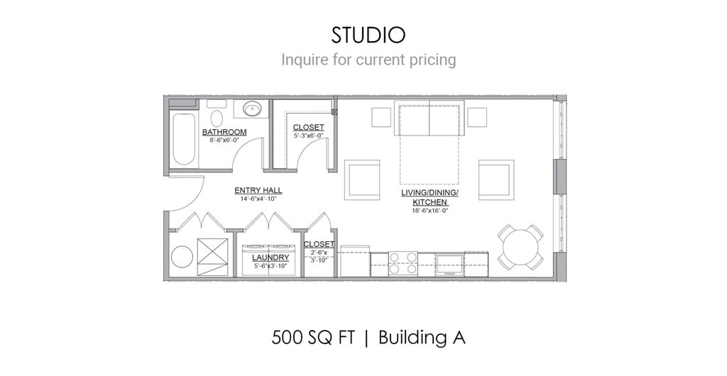 Studio, 500 sqft - Building A - Floorplan 1 Bedroom