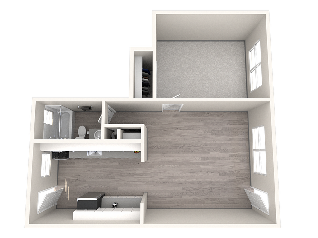 2x1B - Floorplan 11 Apartment Unit: PrivateApartment Model: 2x1B$7232 Bedroom, 1 Bath, sq ftAvailable August 14, 2026