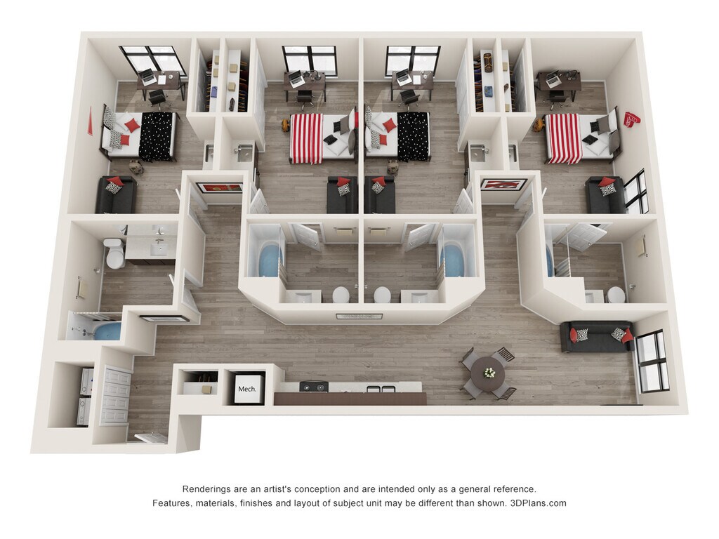 Availability Date Unit Sq Ft Unavailable Four Bed Four Bath 1608 sq ft Apartment Model: Four Bed Four Bath4 Bedroom, 4 Bath, 1608 sq ftUnavailable![]()
