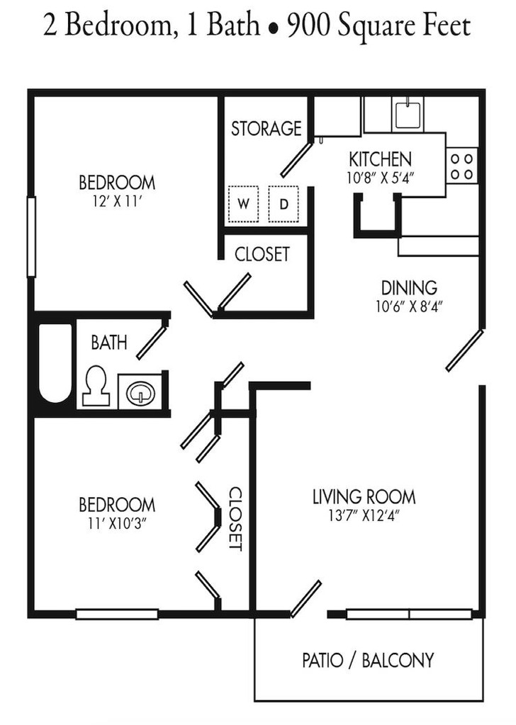 2 Beds, 1 Bath, 805 sq ftAvailable NowModel Gallery