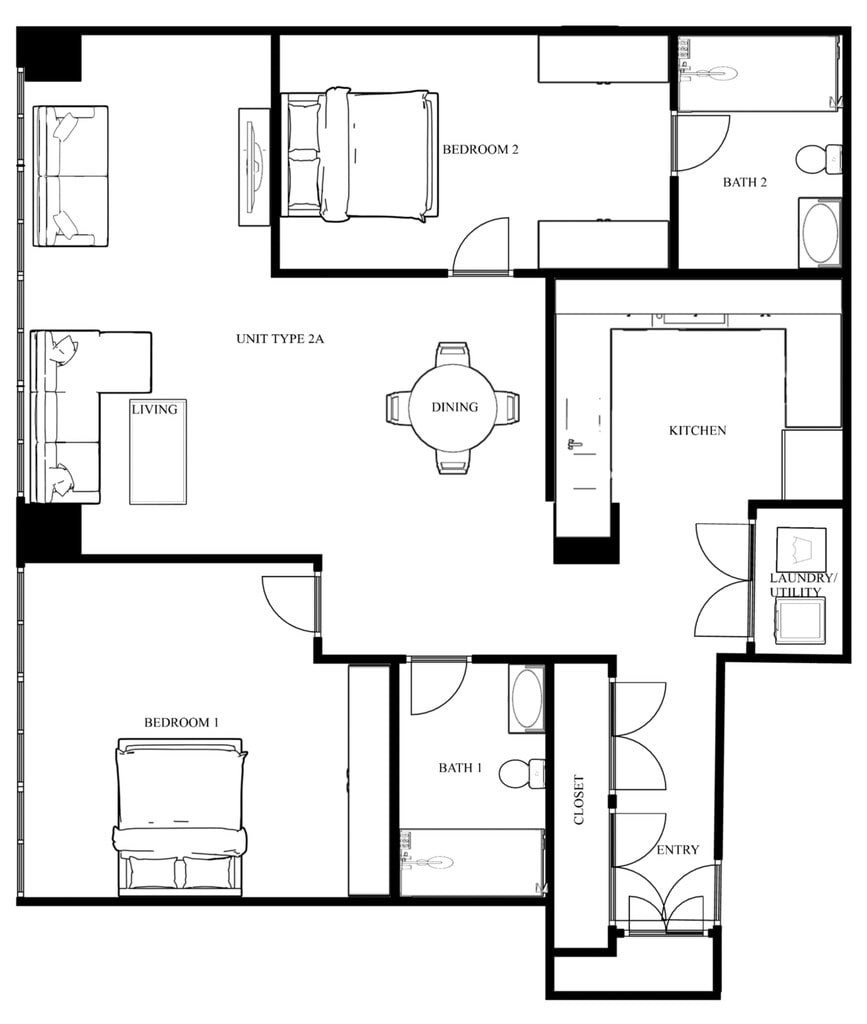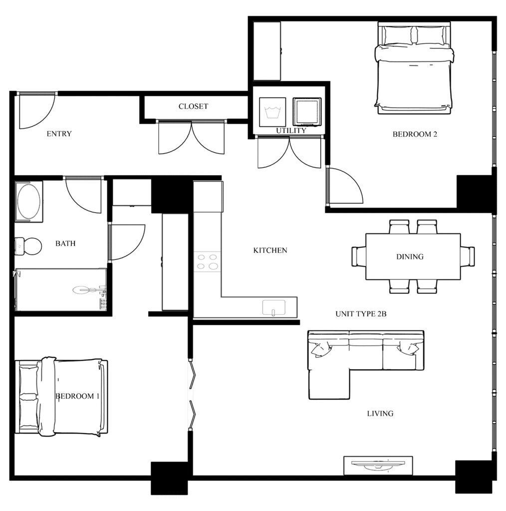 Apartment Model: 2 Bed 1 BathFrom $2,5302 Bedroom, 1 Bath, 1253 sq ftAvailable Now![]()