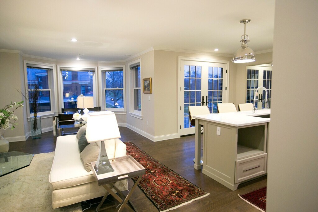 Welcome to The Dennison - Residence 307. This 1 bedroom/ 1 bathroom comes complete with a gourmet kitchen including a gas range, double oven, quartz countertops, and custom cabinetry. The living space features a fireplace, charming bay windows with ample natural light. French doors in the bedroom provide fresh air. The bathrooms are thoughtfully designed with quartz counters, marble flooring, and tiled showers. A full-size in-unit washer/ dryer and attached garage with 24/7 reserved parking available for residents convenience.