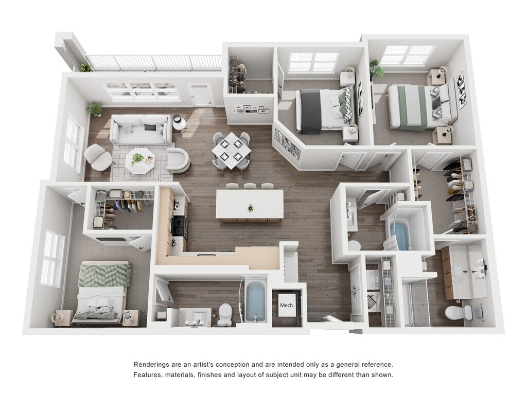 Apartment Model: C1From $2,3253 Bedroom, 3 Bath, 1514 sq ftAvailable June 30, 2026![]()