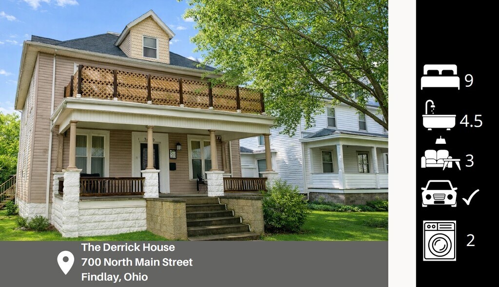 Fully Furnished Student Housing Near University of Findlay | Easy Move In | All Utilities Included Move in with ease in this fully furnished 9 bedroom, 4.5 bath student home. No furniture to move and no utilities to set up. All utilities are included and paid by the owner, including water, electric, gas, trash, TV, and high speed internet, making budgeting simple and stress free! This recently remodeled home offers modern finishes throughout and is designed for academic year living. Individual bedrooms are available for $750 per month, with a larger penthouse style attic suite available for $850 per month. The attic bedroom offers extra living space and includes a couch and TV, making it a great option for students wanting more privacy and room to relax. The home features a spacious kitchen, separate dining and living rooms, and a study or game room ideal for studying or spending time with roommates. Two washer and dryer sets are included for convenience. The home comes fully furnished with smart TVs, board games, and a fully stocked kitchen. Just bring your own queen size bedding and towels. Discounted storage units are available for students who need to store extra furnishings or personal items. Enjoy outdoor hangout spaces including a porch, back deck, and balcony, plus free parking. Located just minutes from the University of Findlay campus. Available June 1, 2026 for academic year leasing through May 2027. Need a different move in date or accommodations? Please inquire.
