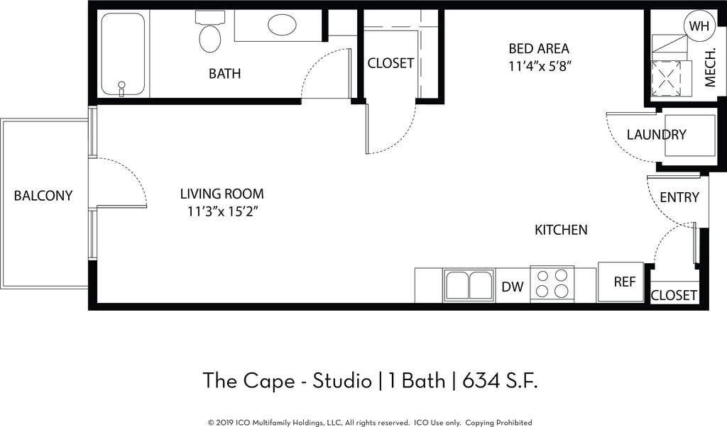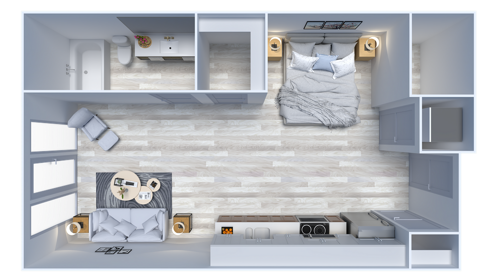 Studio, 1 Bath, 634 sq ftAvailable NowLargest StudioThis is the largest Studio at this PropertyModel Gallery
