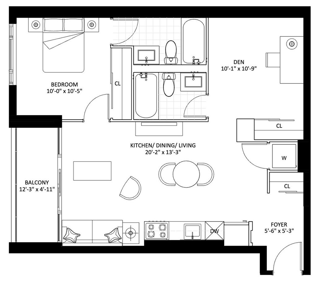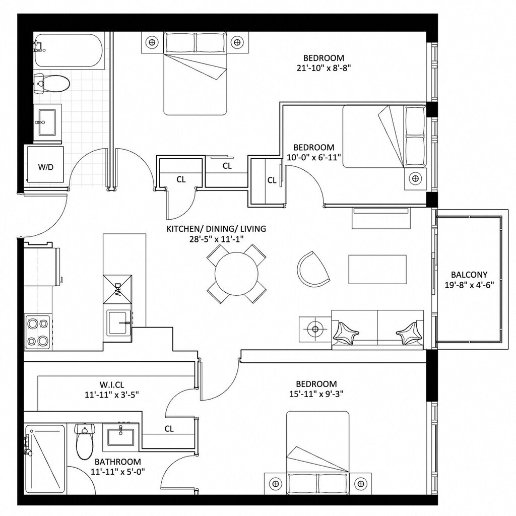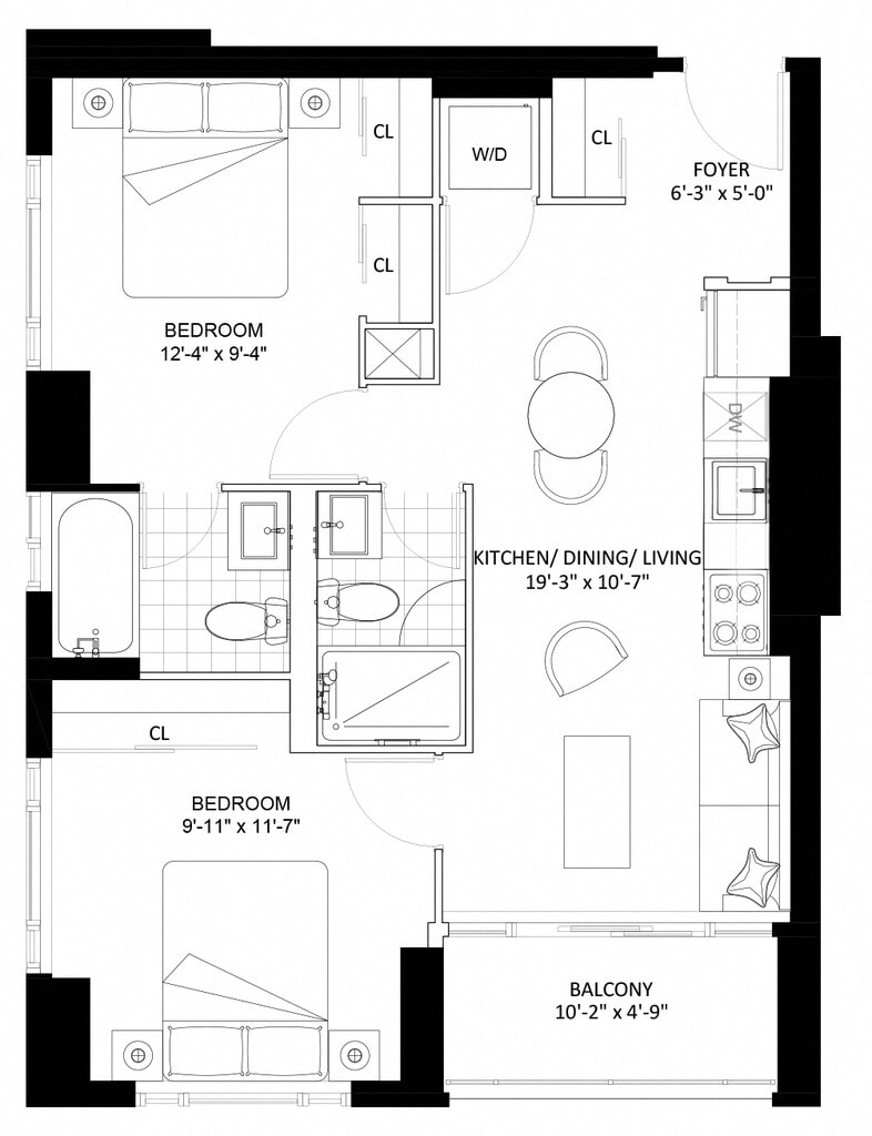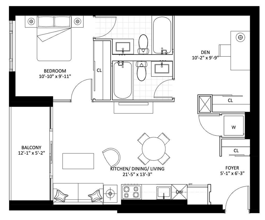 Diamond 2 - Plan C - Floorplan 1 Apartment Unit: Diamond 2 - Plan C SuiteApartment Model: Diamond 2 - Plan C$2,1451 Bedroom, 1 Bath, 485 sq ftAvailable January 1, 2026Diamond 2 - Plan O