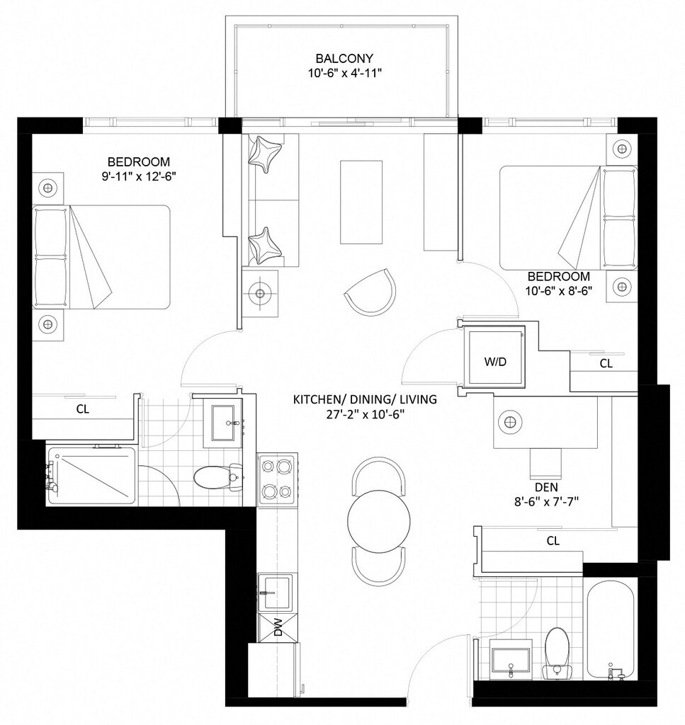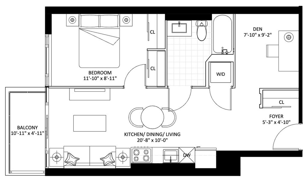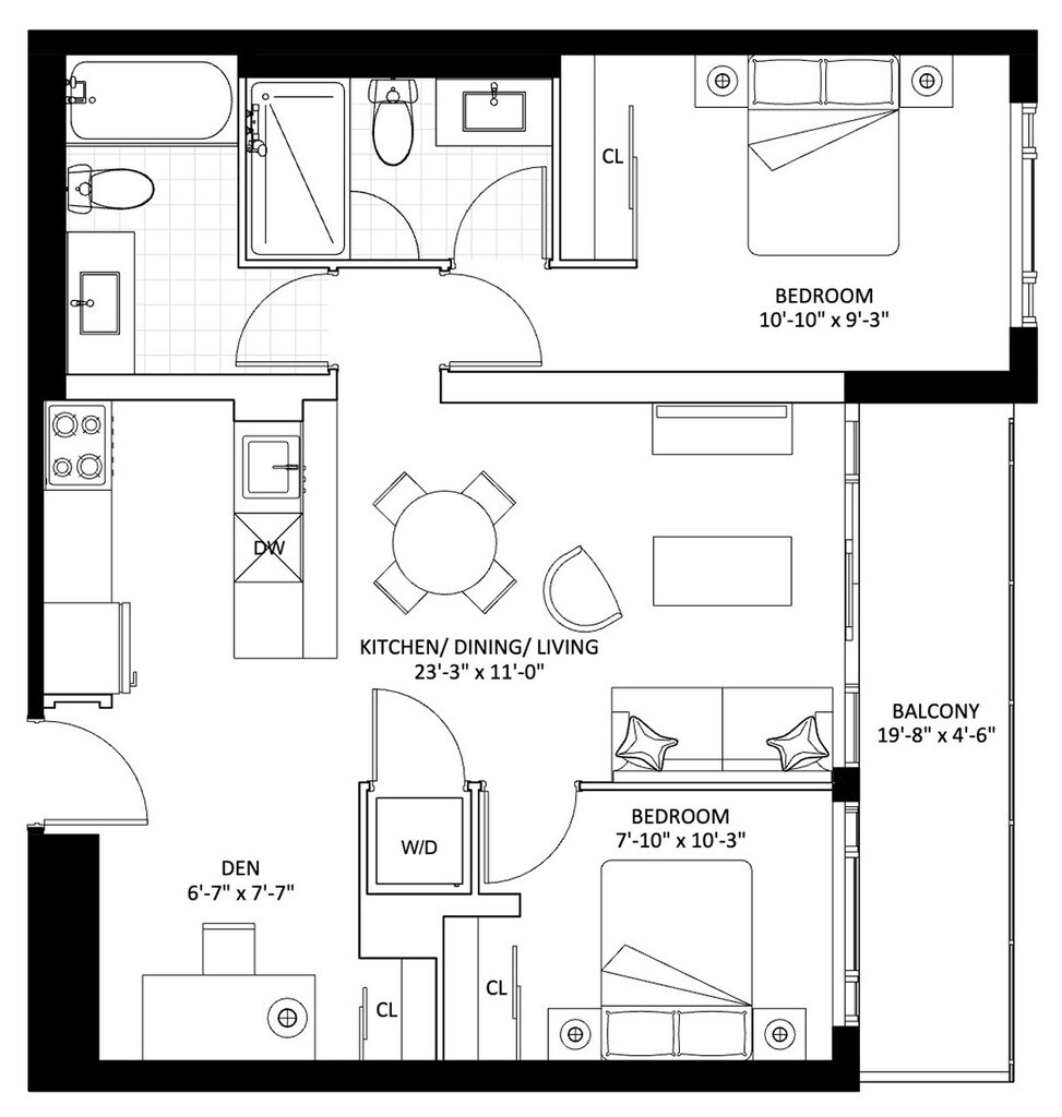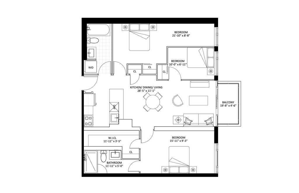 Diamond 2 - Plan C - Floorplan 1 Apartment Unit: Diamond 2 - Plan C SuiteApartment Model: Diamond 2 - Plan C$2,1451 Bedroom, 1 Bath, 485 sq ftAvailable January 1, 2026Diamond 2 - Plan O