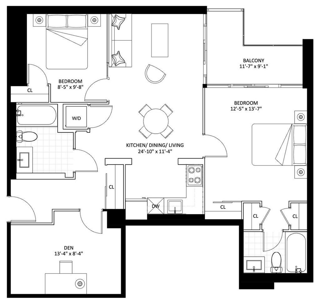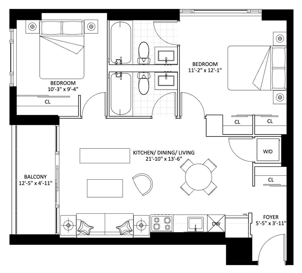 Diamond 3 - Plan A - Floorplan 1 Apartment Unit: Diamond 3 - Plan A SuiteApartment Model: Diamond 3 - Plan A$2,1001 Bedroom, 1 Bath, 495 sq ftAvailable January 1, 2026Diamond 3 - Plan L